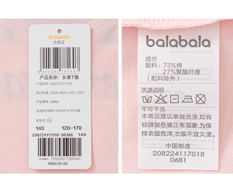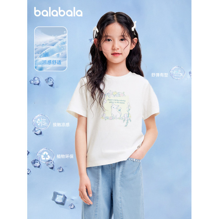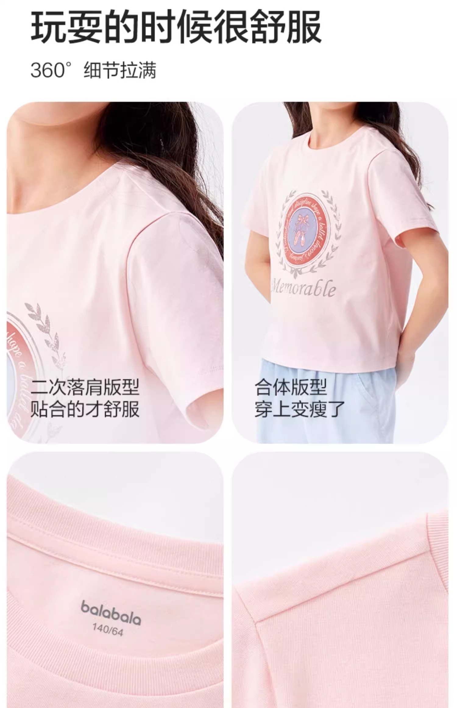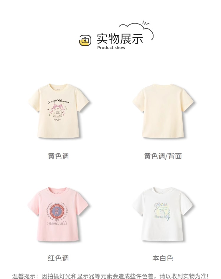 巴拉巴拉女童短袖t恤中大童圓領半袖兒童白色打底衫夏季新款童裝5