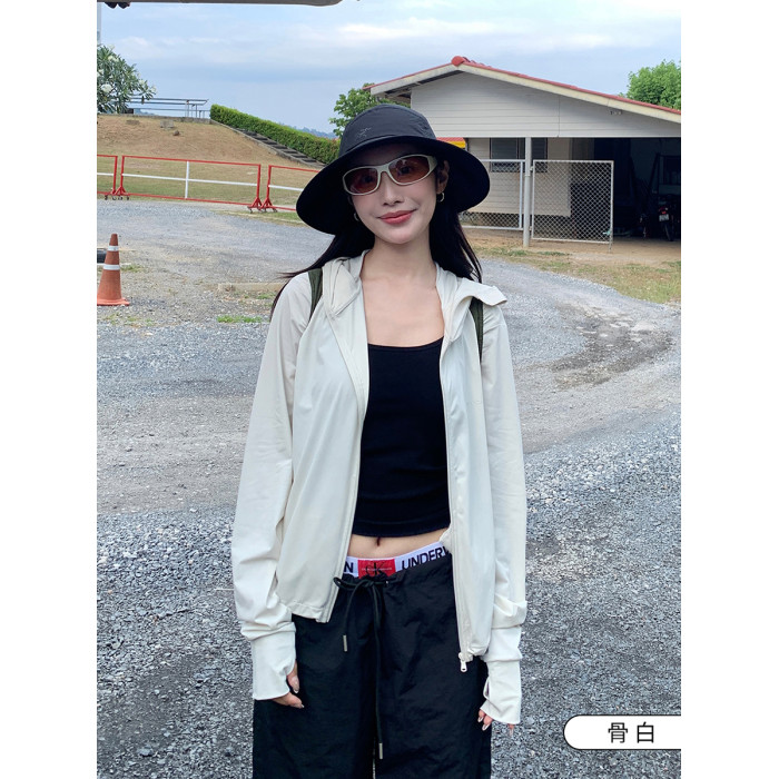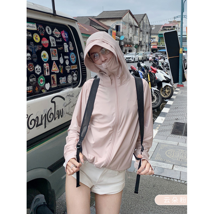 杜小宅UPF50+冰絲連帽防曬服女防紫外線皮膚衣輕薄透氣夏季防曬衣