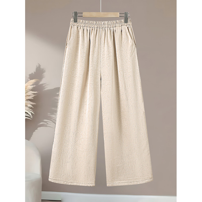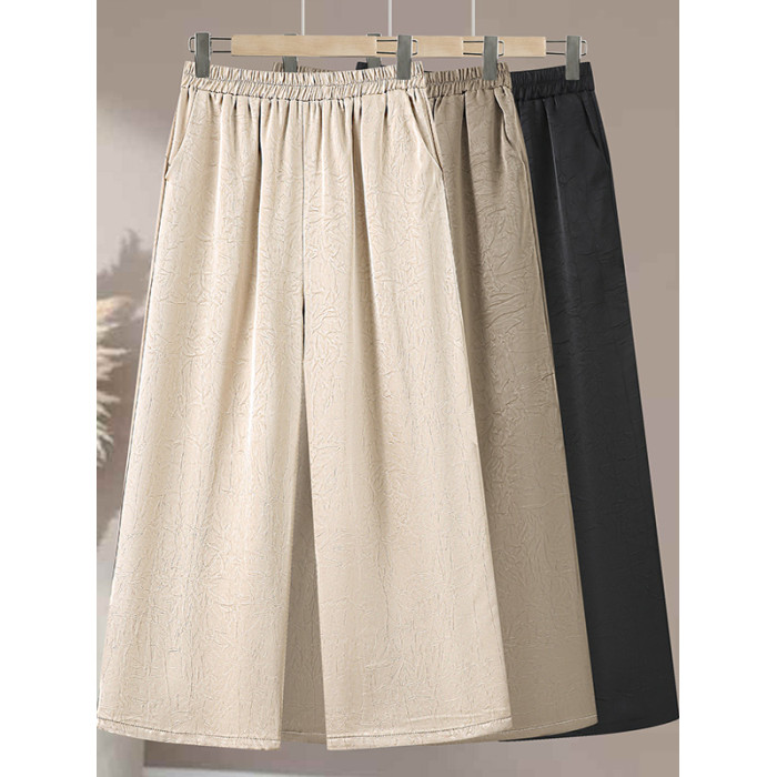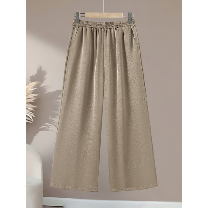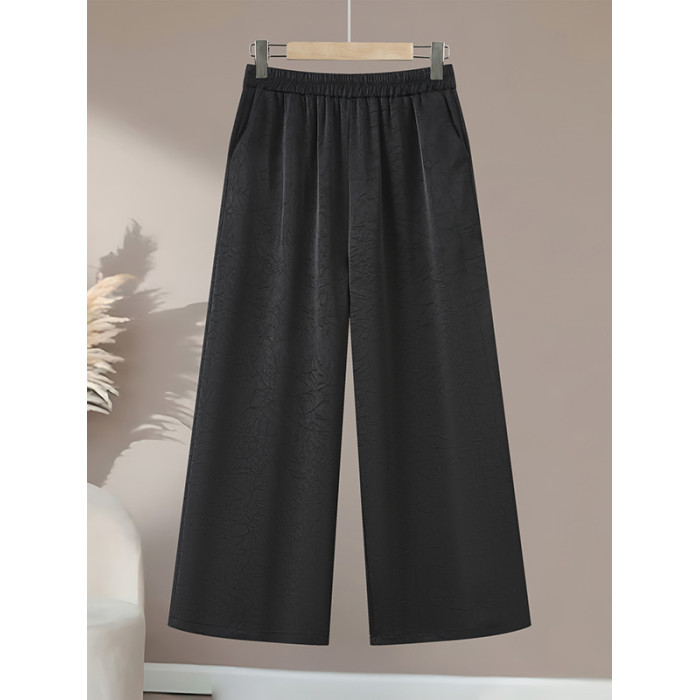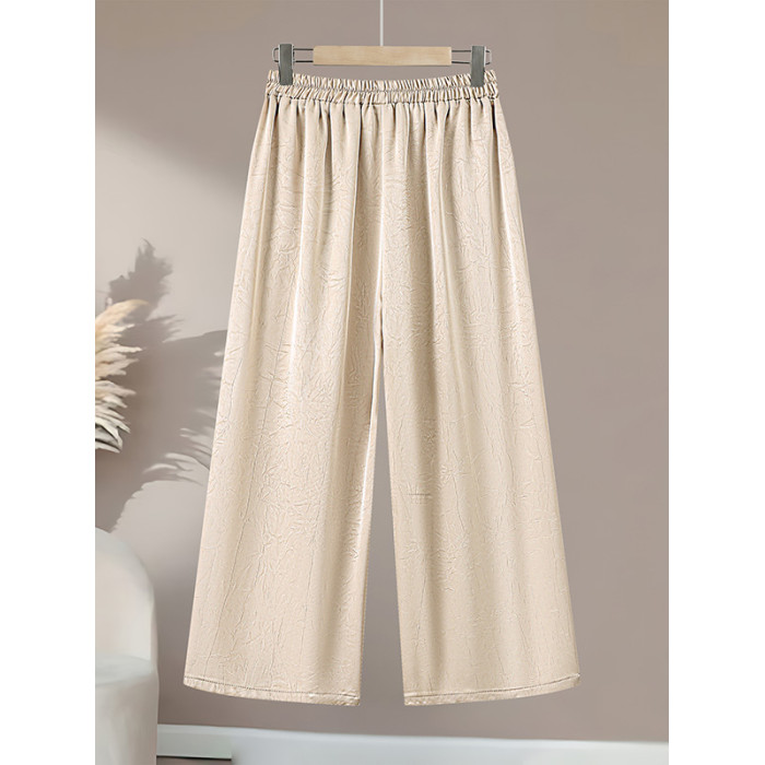 媽媽冰絲印花濶腿褲女夏薄款2025新款垂感涼涼褲醋酸緞面直筒褲子