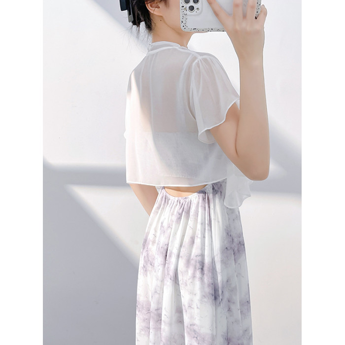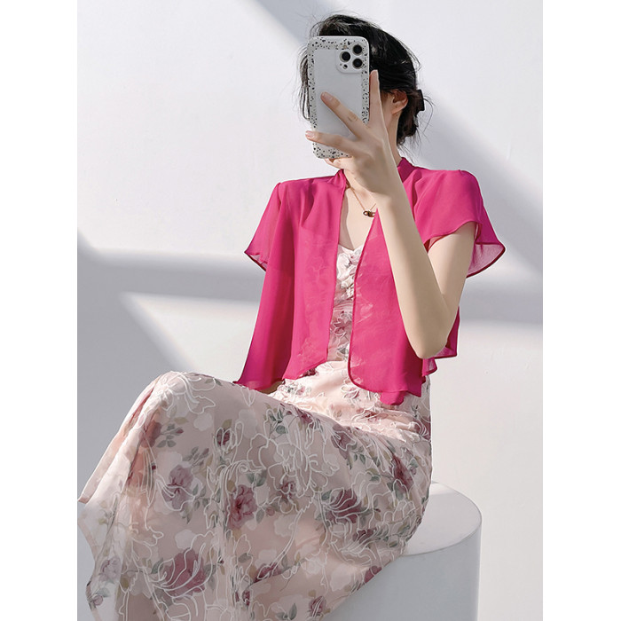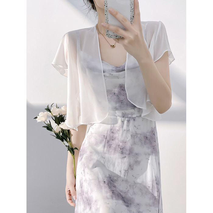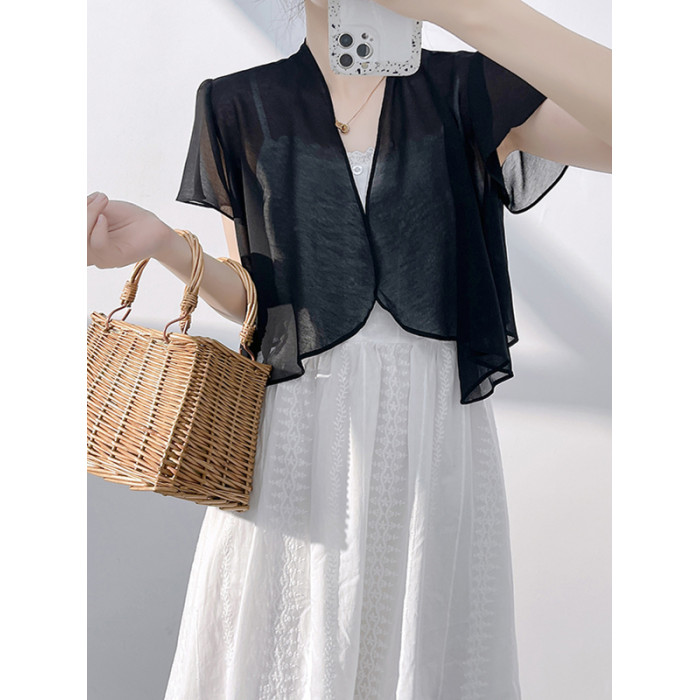 2025韓春夏防曬衣真絲短袖小披肩女桑蠶絲短外套短款坎肩開衫百搭