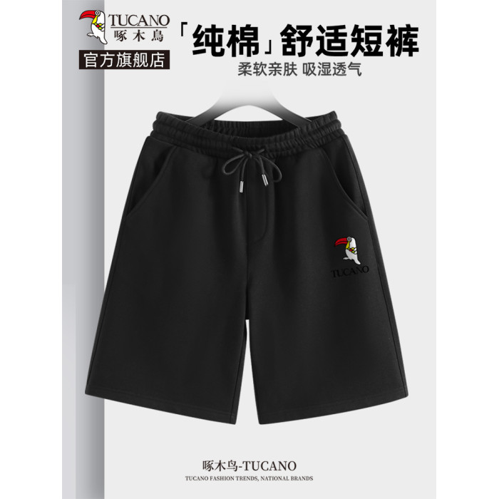 啄木鳥純棉短褲男款夏季2025新款寬松五分中褲男士運動休閒褲子Y