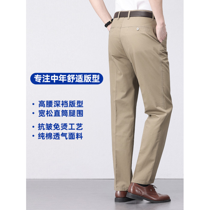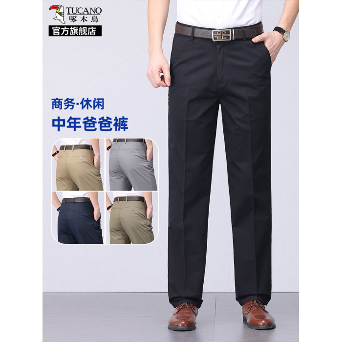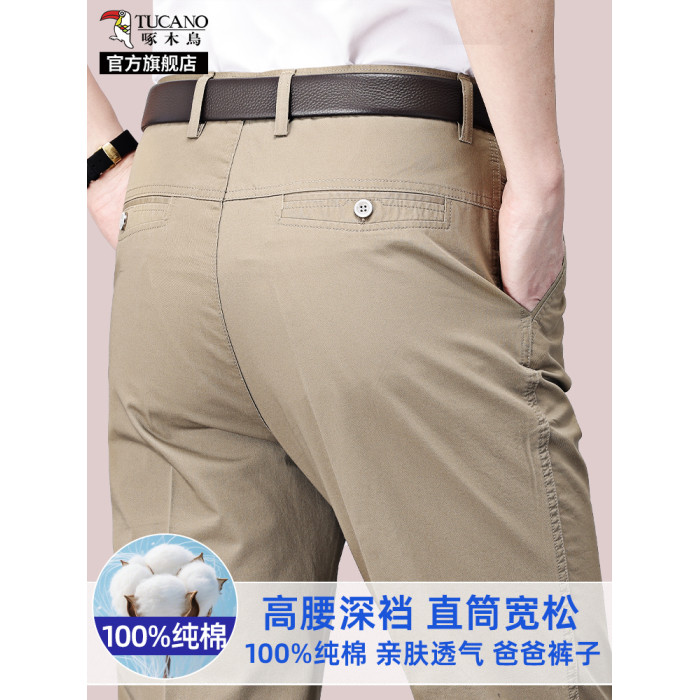 啄木鳥官方旗艦男士休閒褲夏季薄款寬松直筒商務正裝高腰西褲子K