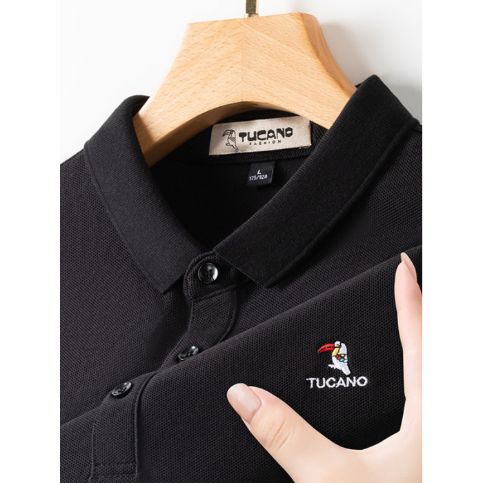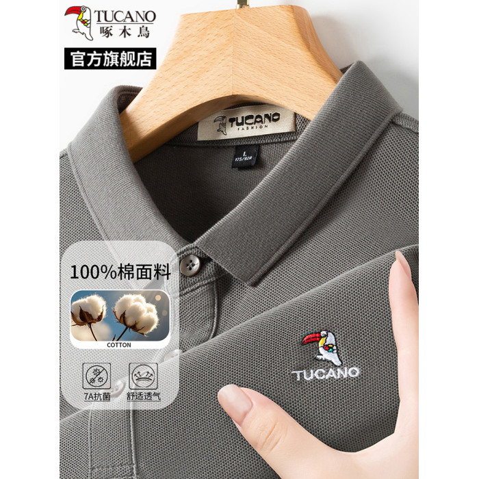 【7A抗菌】啄木鳥100%純棉短袖t恤男夏季純色翻領半袖POLO衫上衣H