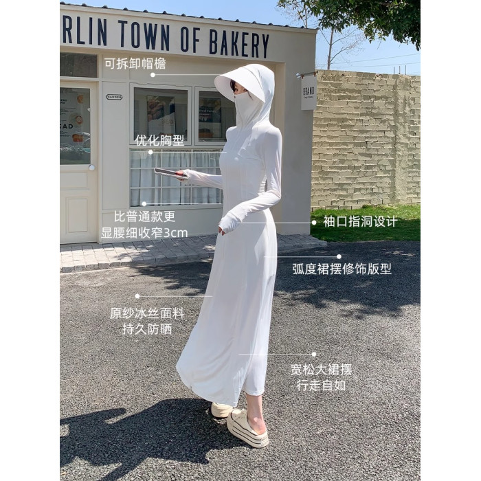 德國白色防曬衣女夏季長款全身冰絲防曬裙防紫外線冰感戶外防曬服