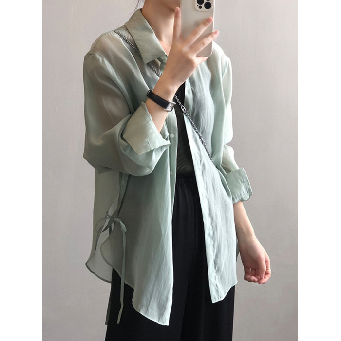 真絲透氣襯衫防曬衣女夏季輕奢高級感開衫桑蠶絲混紡薄外套女罩衫