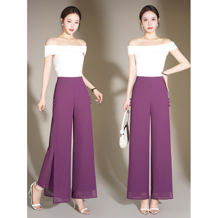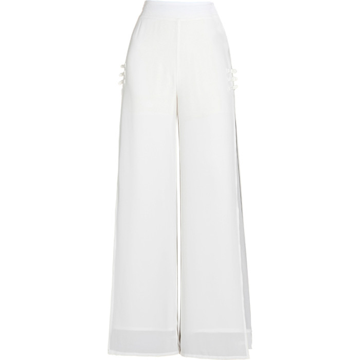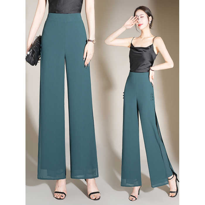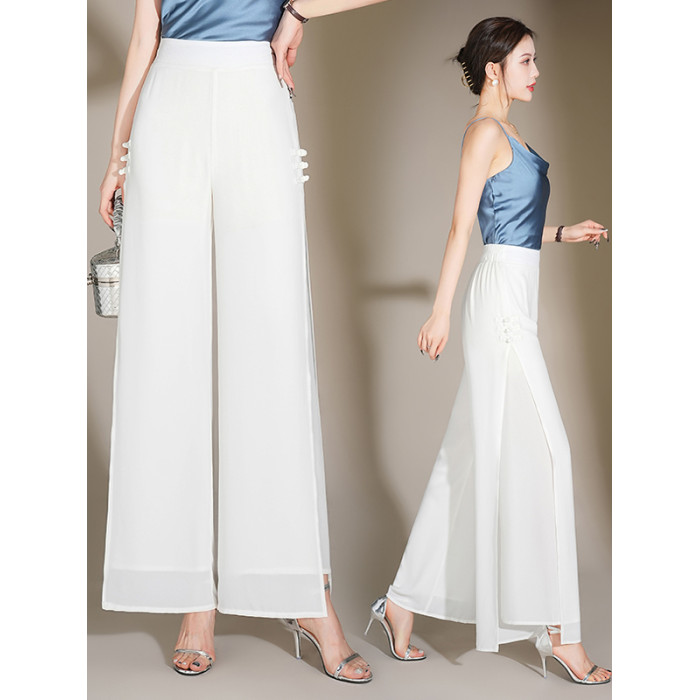 2025新款真絲雪紡休閒褲女士夏季薄款濶腿褲修身顯瘦高級氣質裙褲