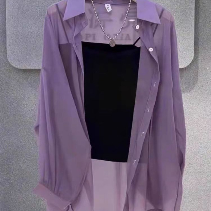 夏季紫色polo領薄款防曬衣女冰絲涼感時尚洋氣別致寬松外套上衣