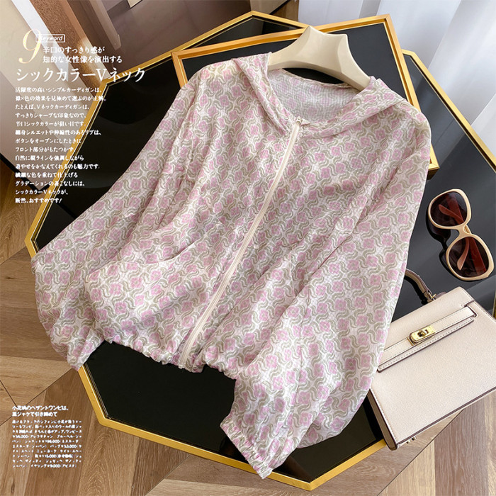 色調美暈你!12姆米真絲橫條縐YKK拉鍊防曬衣女長袖夏季時尚外套