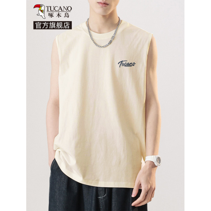 啄木鳥美式坎肩背心男夏季純棉寬松簡約無袖t恤男生健身運動上衣Y