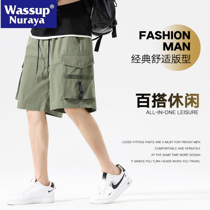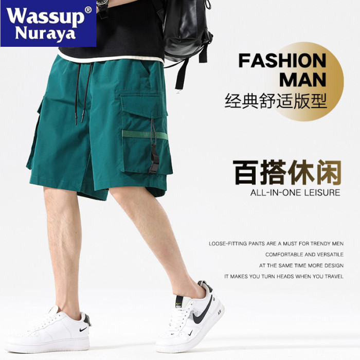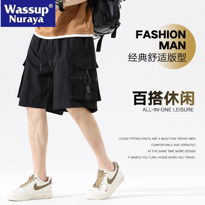WASSUP NURAYA橙色工裝運動短褲男夏季山系美式休閒直筒五分中褲