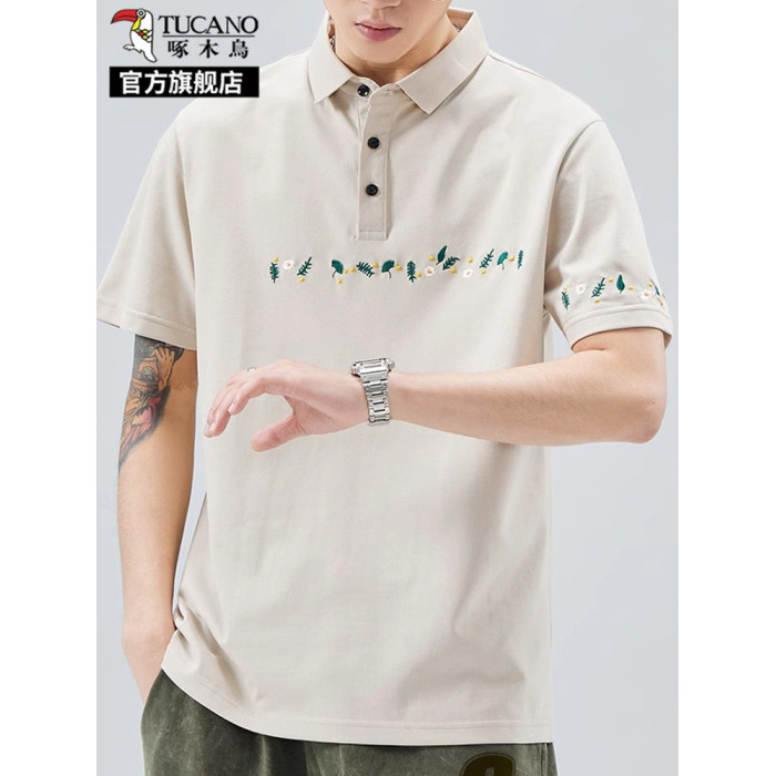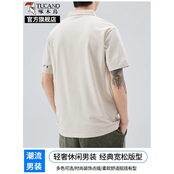啄木鳥刺綉短袖polo衫男士t恤2025新款夏季潮牌寬松休閒半袖上衣K