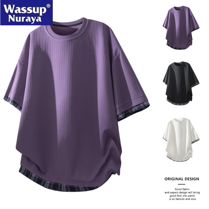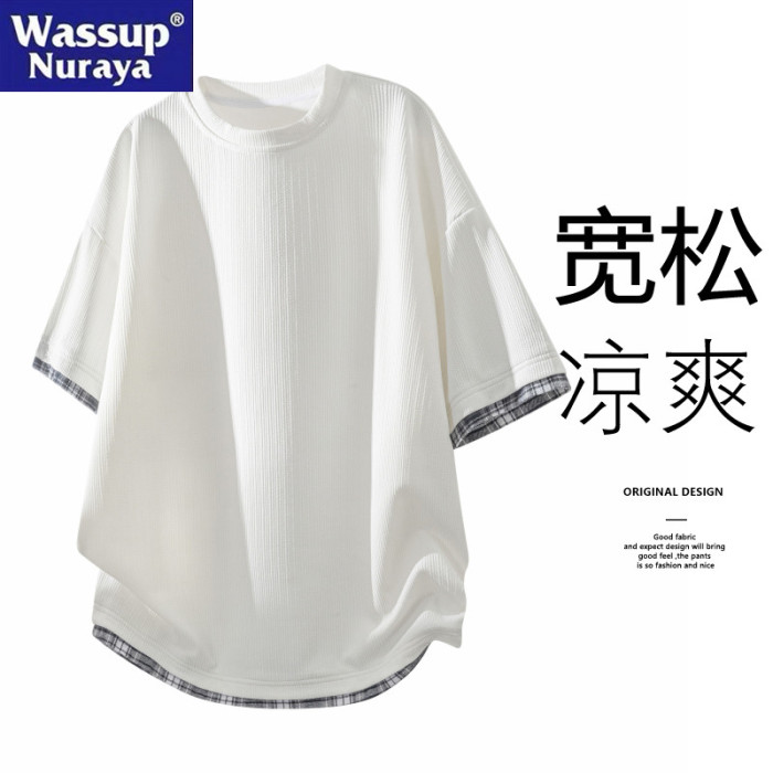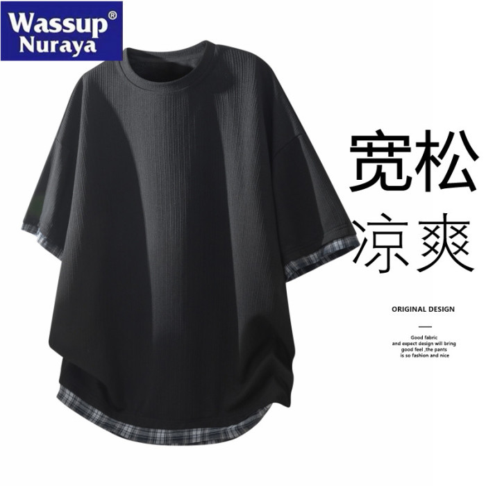 WASSUP Nuraya潮牌夏季假兩件短袖T恤男寬松休閒冰絲體恤上衣t恤