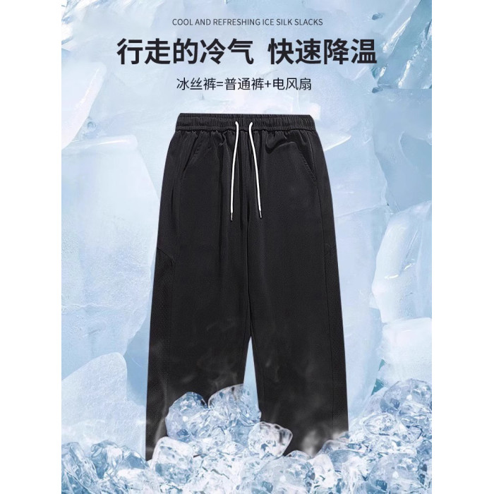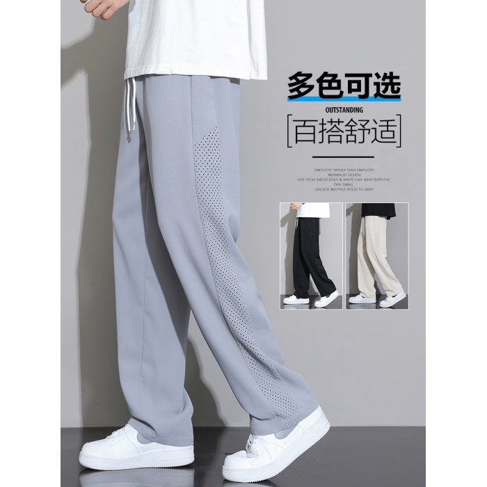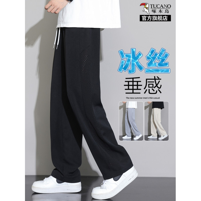 啄木鳥男士冰絲休閒褲夏季薄款2025新款寬松速乾褲網眼運動褲子K