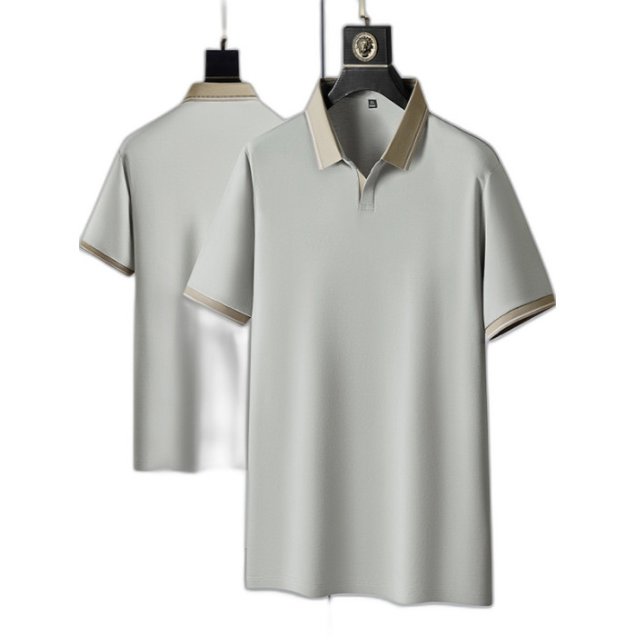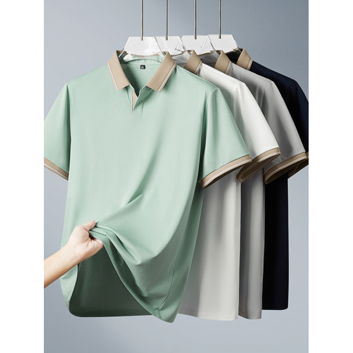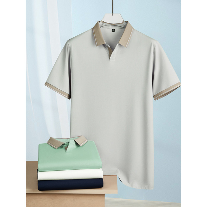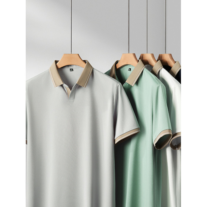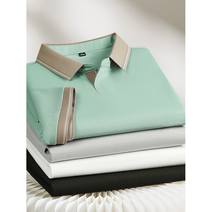 春夏2025商務舒適百搭休閒翻領冰絲拼色設計短袖POLO衫T恤薄款