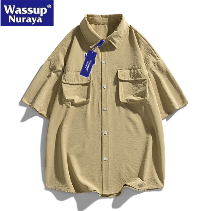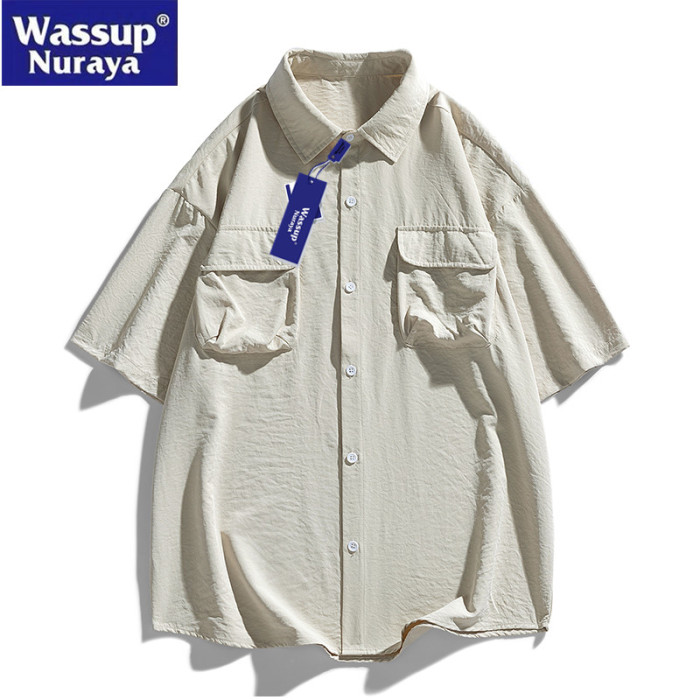 WASSUP Nuraya潮牌短袖襯衫男夏季寬松休閒五分袖襯衣bf風潮外套