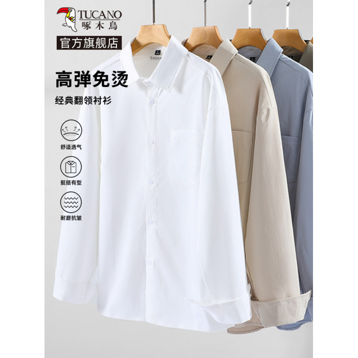 啄木鳥男士襯衫2025新款秋季寬松休閒長袖外套男款百搭通勤上衣Y