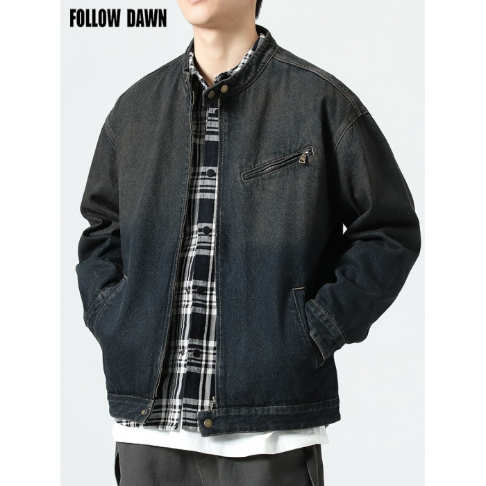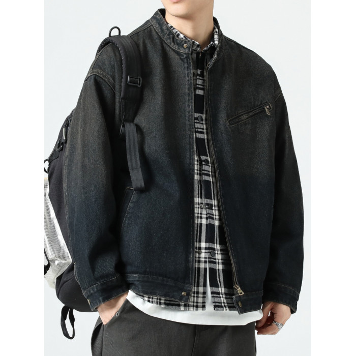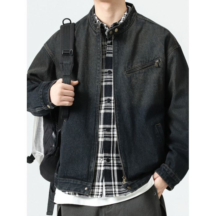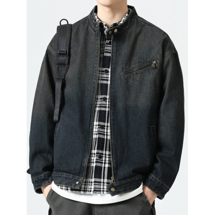 美式復古懷舊牛仔外套男士2025春季休閒寬松立領底特律工裝夾克