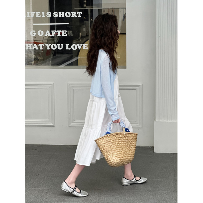 女童夏季連衣裙2025新款甜美度假風女孩百搭防曬衣背心裙子兩件套