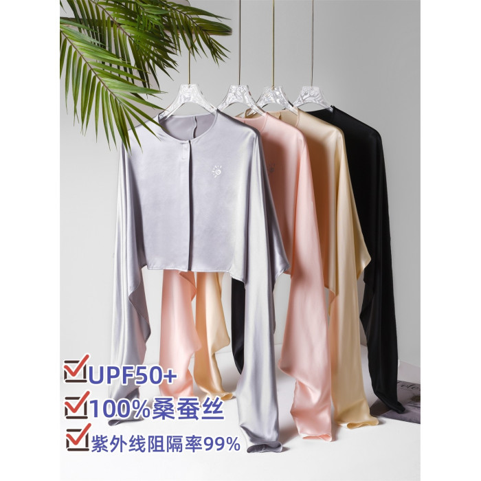 100%桑蠶絲防曬衣開車遮陽透氣防紫外線真絲開衫防曬披肩戶外騎行