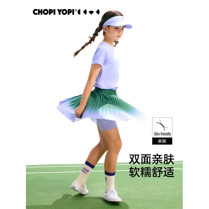 chopiyopi童裝 女童漸變色半身裙壓褶夏季兒童運動潮流百褶短裙