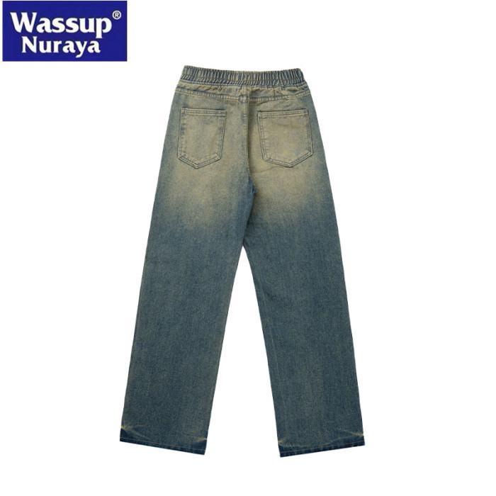 WASSUP Nuraya潮牌美式高街水洗牛仔褲男濶腿寬松直筒做舊長褲子