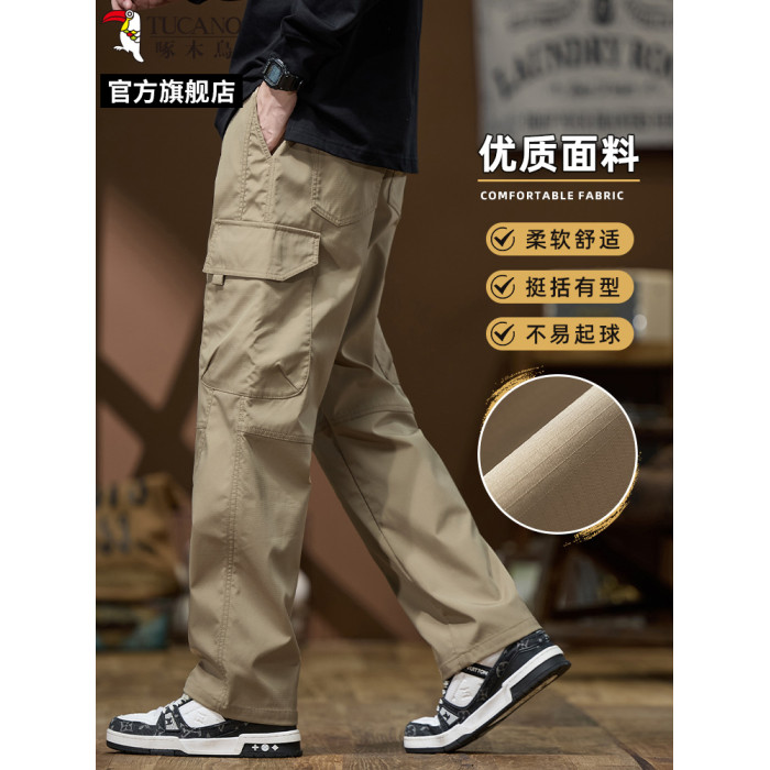 啄木鳥工裝褲男2025新款夏季薄款寬松直筒多口袋長褲休閒褲男款Q