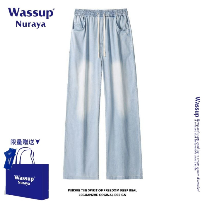 WASSUP NURAYA萊賽爾冰絲牛仔褲男夏季薄款涼感濶腿寬松垂感褲子