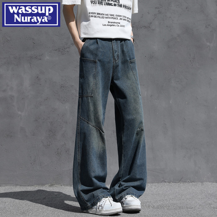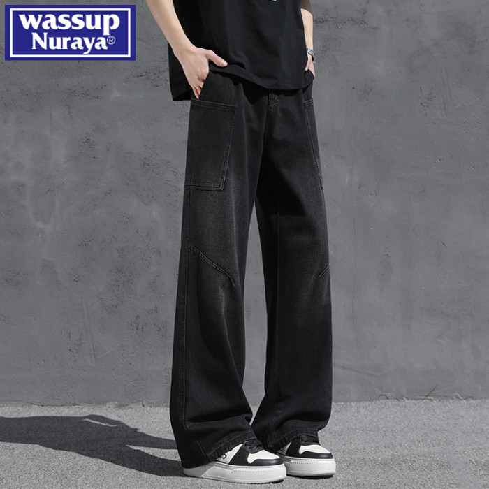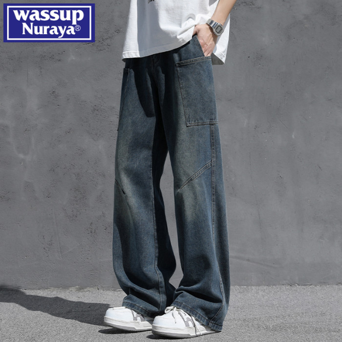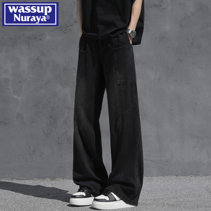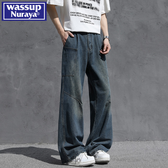 WASSUP NURAYA夏季2025新款男生牛仔褲濶腿潮牌美式直筒褲子秋季