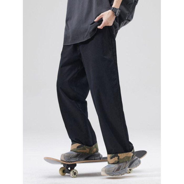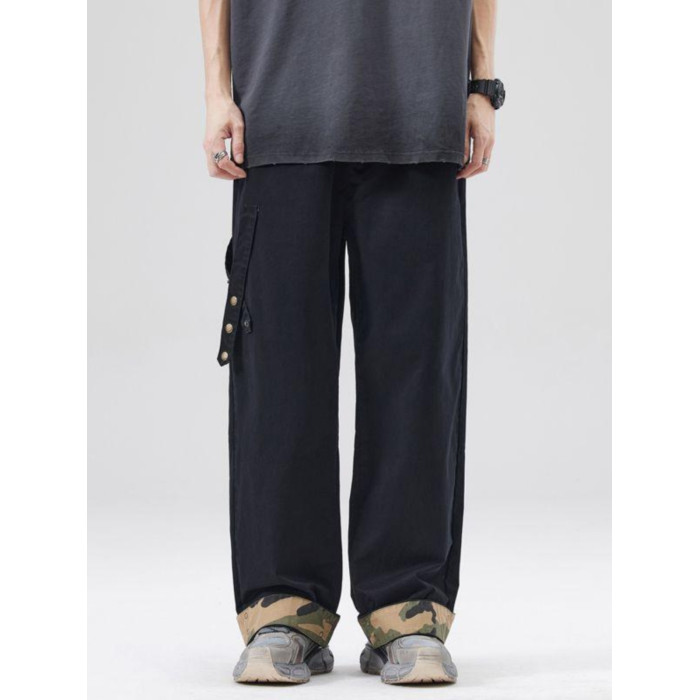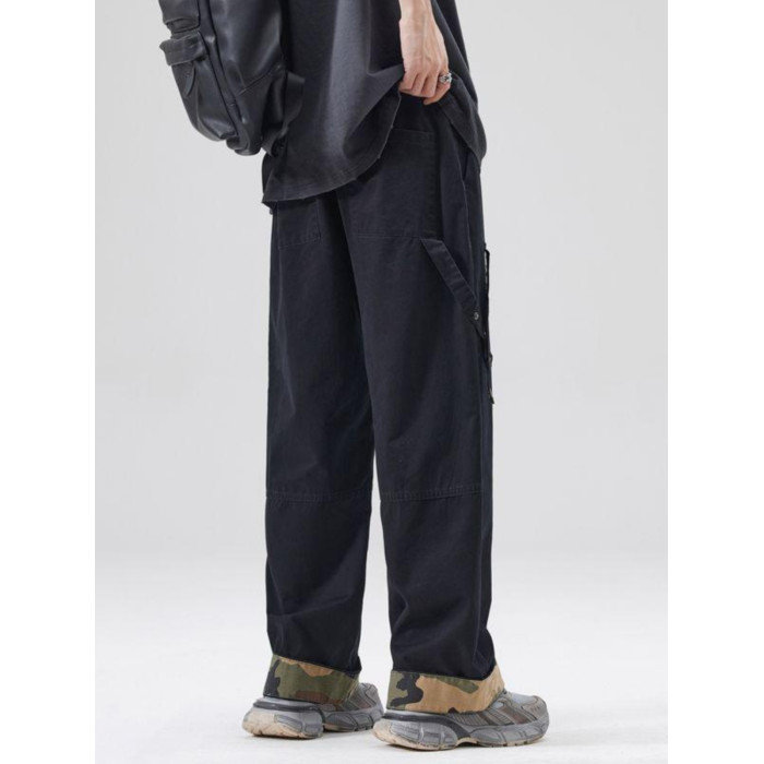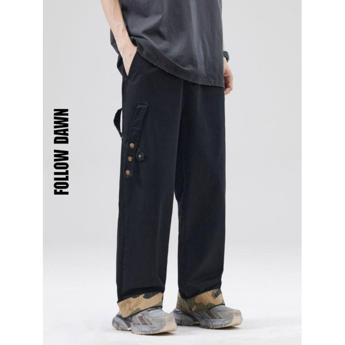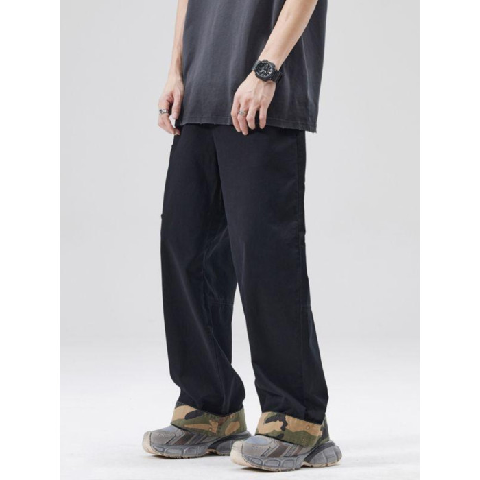 2025春季新款男款美式復古休閒褲純棉日系濶腿工裝褲潮牌寬松直筒