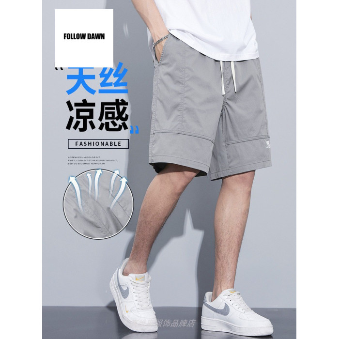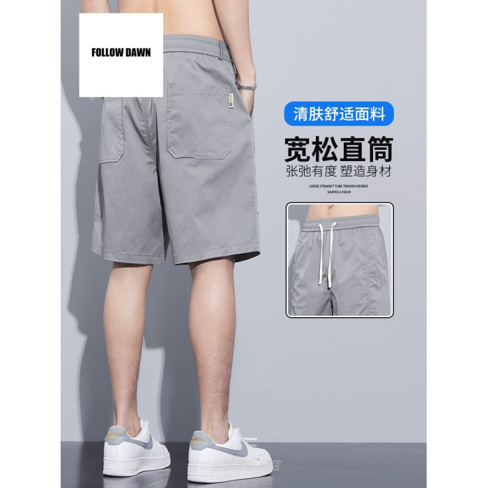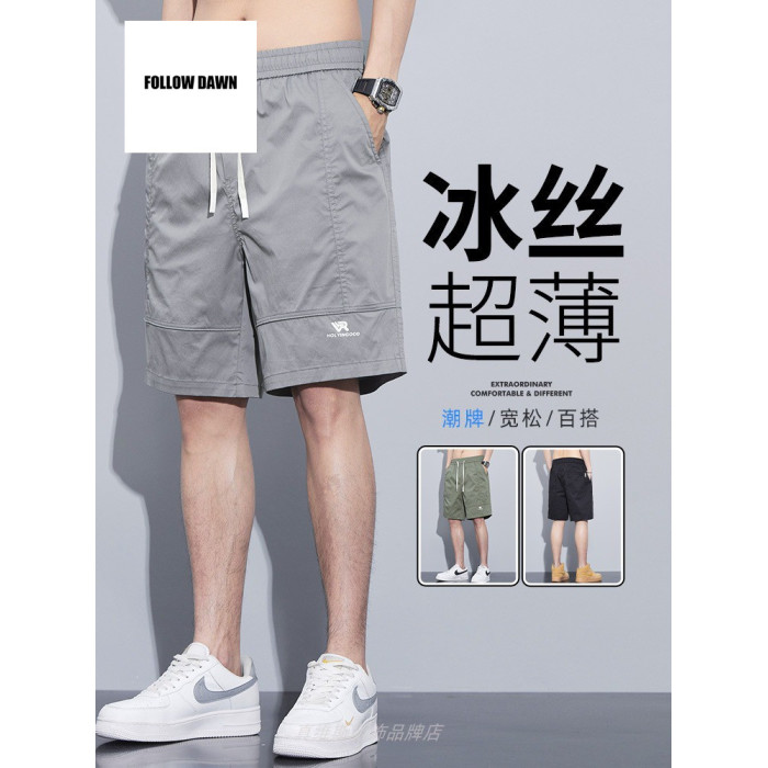 冰絲休閒短褲男士夏季薄款寬松直筒運動工裝5五分褲子男