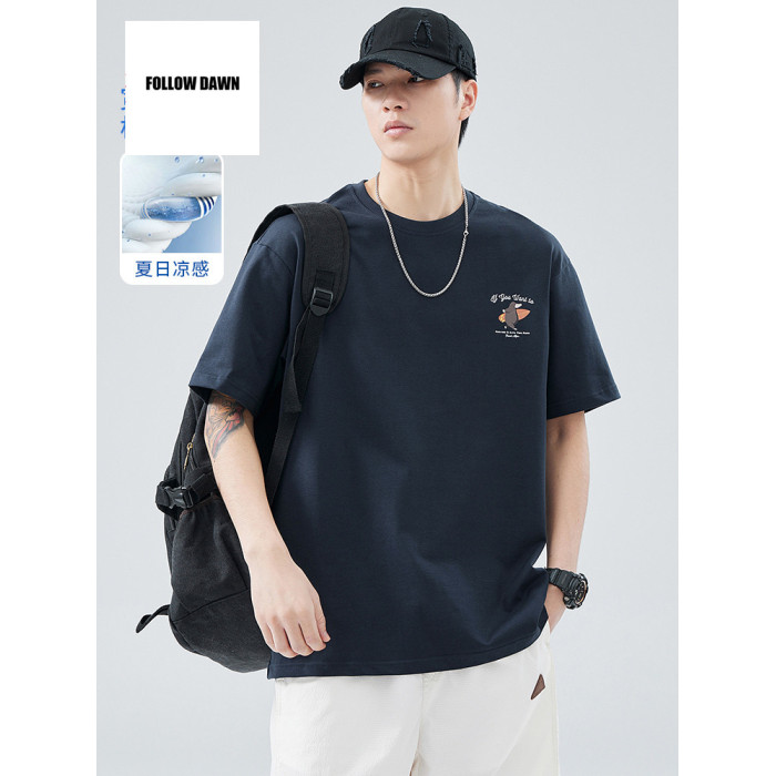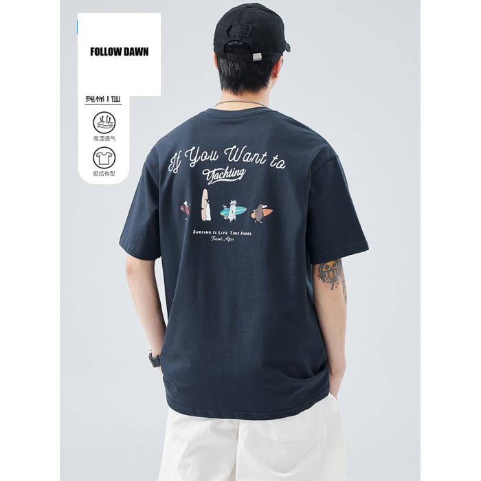 短袖T恤男夏季2025新款趣味沖浪印花寬松半袖重磅打底衫