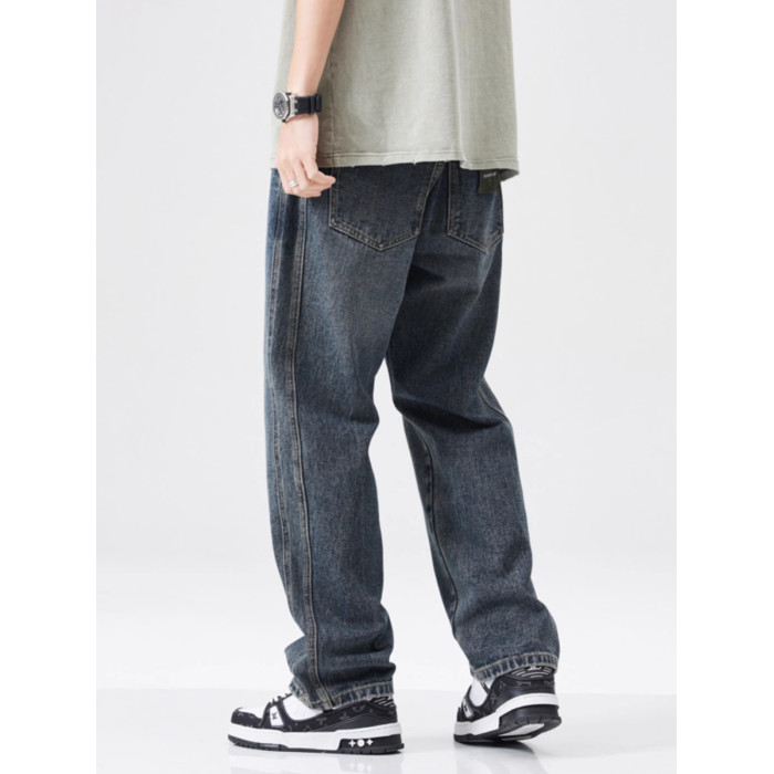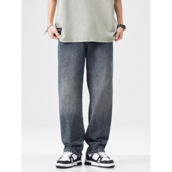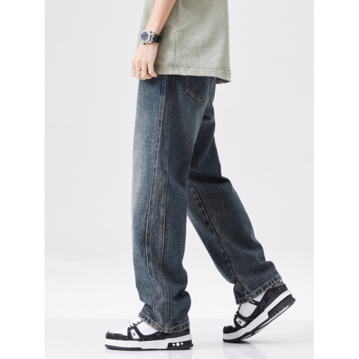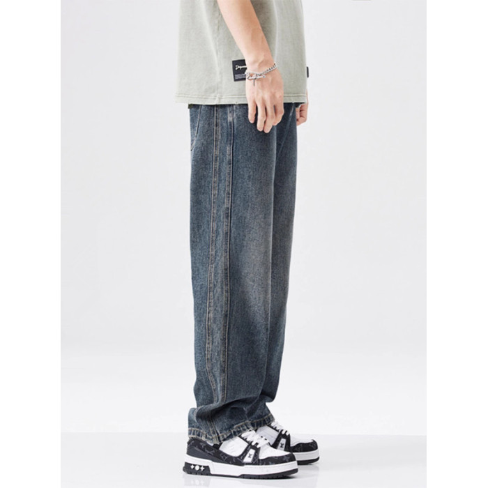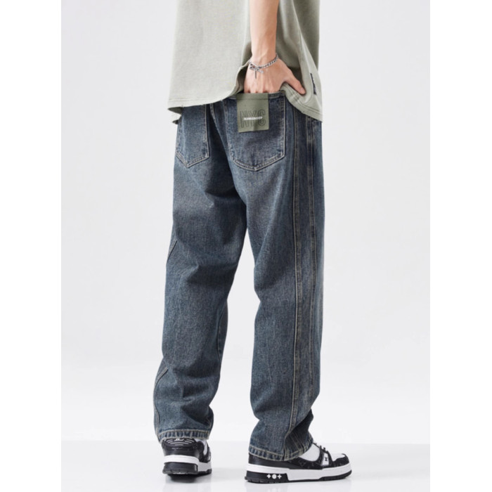 美式復古牛仔褲男2025夏季新款寬松直筒潮牌水洗濶腿休閒長褲子