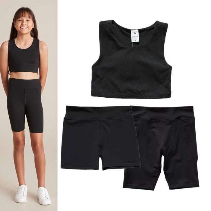 新潮款 女兒童運動速乾套裝小背心內衣 三分褲中褲 瑜伽舞蹈服