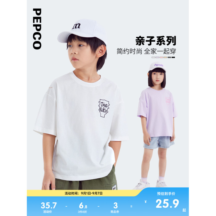 小豬班納童裝夏裝新款兒童圓領上衣男童短袖T恤女童親子裝男孩