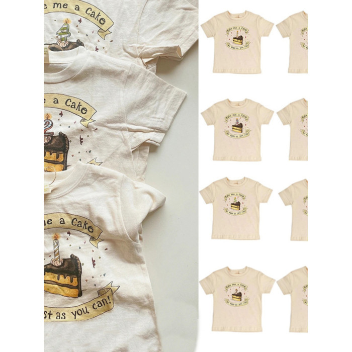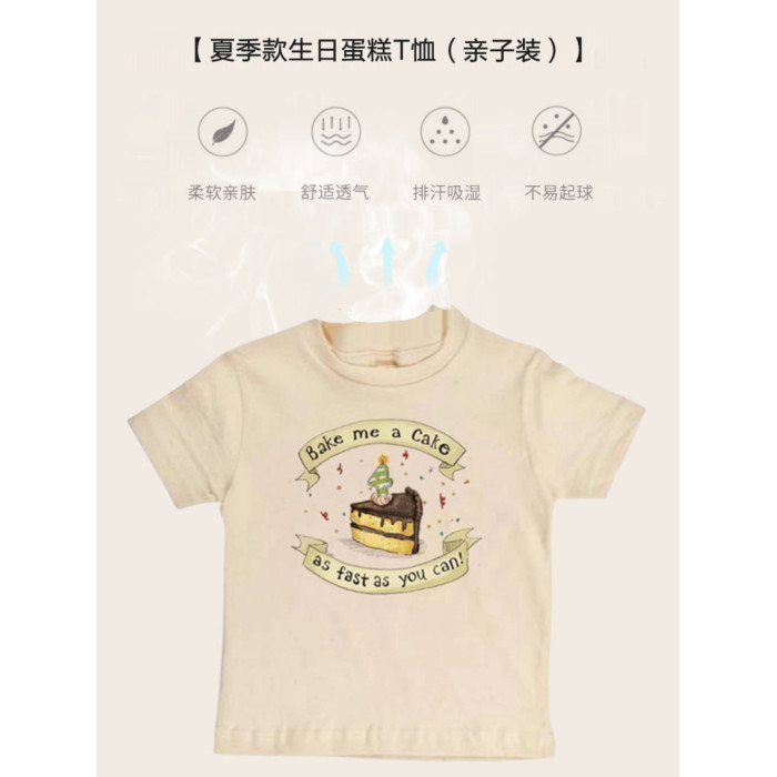 嬰幼童親子裝純棉母女裝短袖2025夏季新款T恤生日蛋糕印花上衣