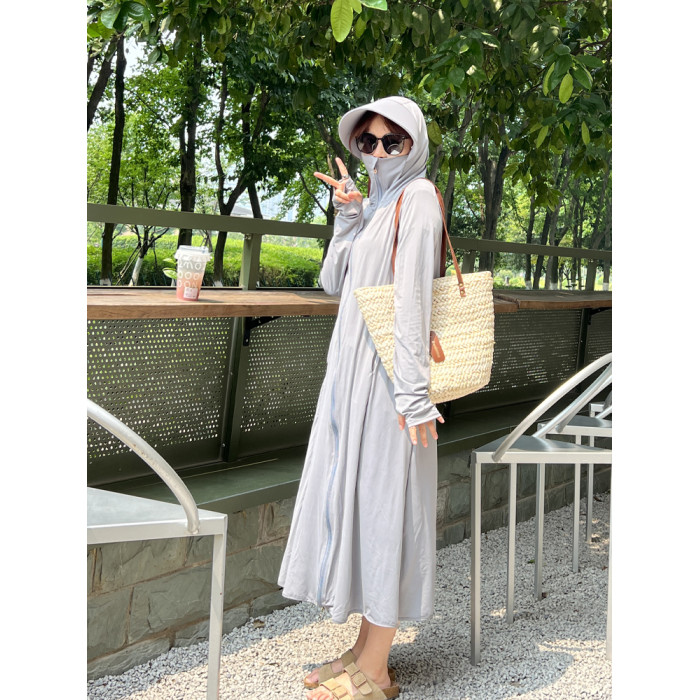 冰絲長款防曬衣全身防曬防紫外線電動車防曬服UPF50+防紫外線
