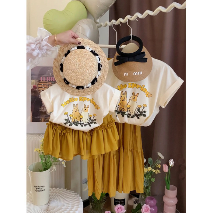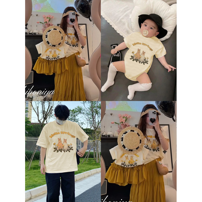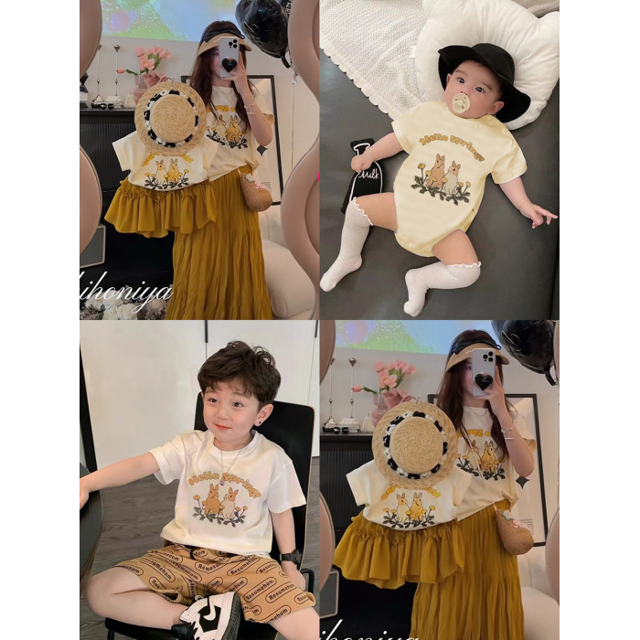 不一樣的親子裝夏季一家三口母女兒童母子純棉T恤半身裙海邊度假