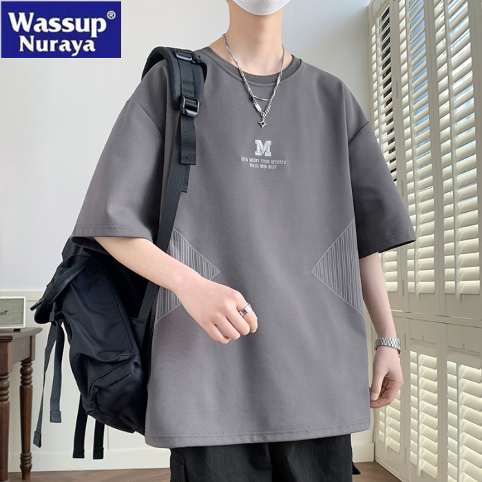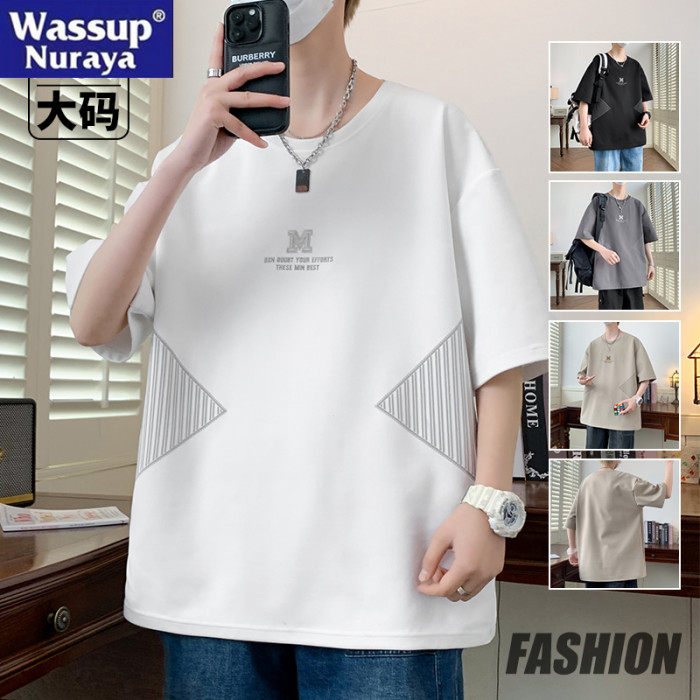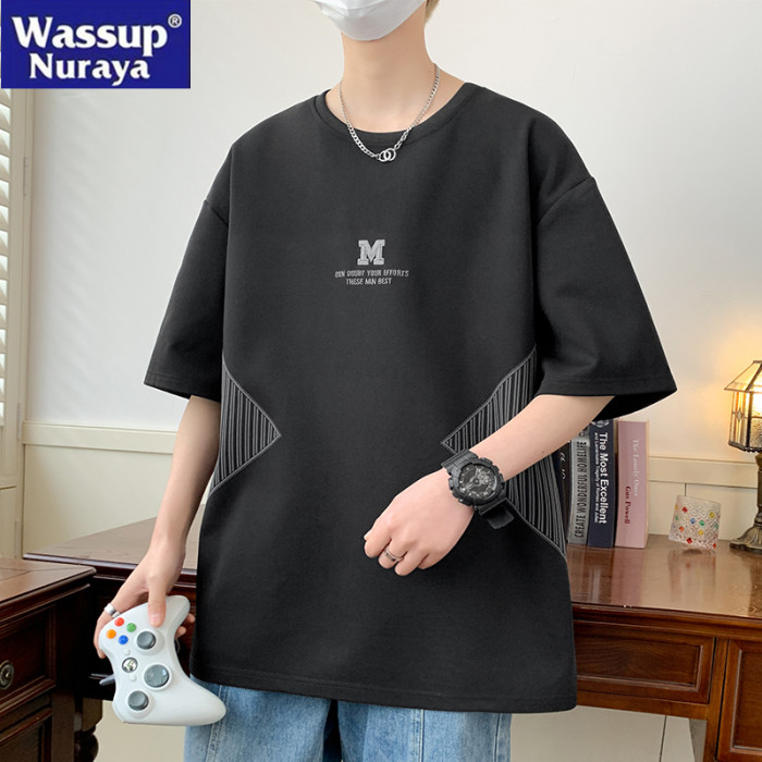 WASSUP NURAYA短袖男夏季新款寬松潮牌百搭休閒加肥加大碼半袖t恤