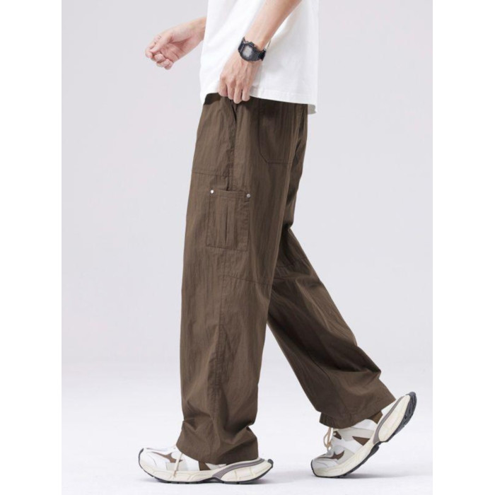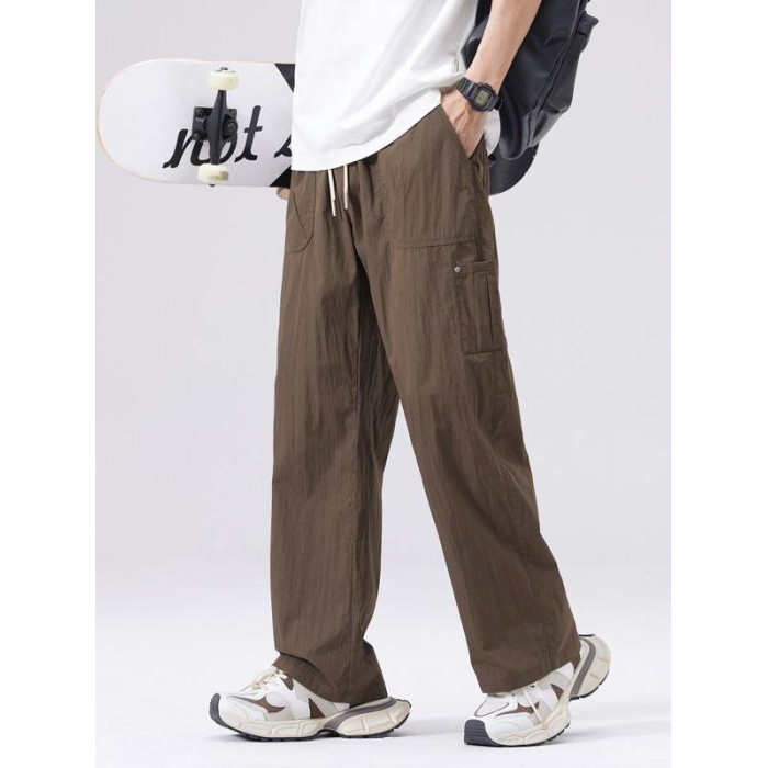 2025夏季新款美式潮牌戶外山系工裝休閒褲平紋棉薄款濶腿直筒褲