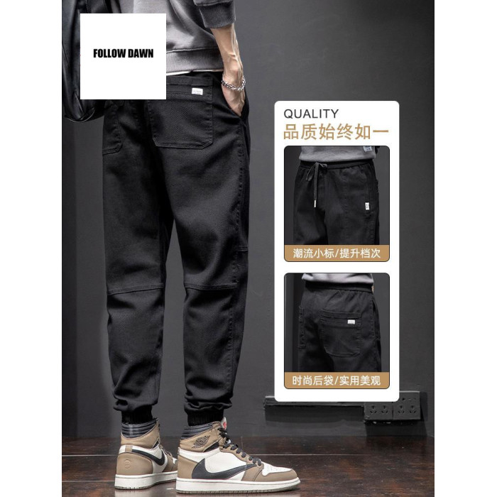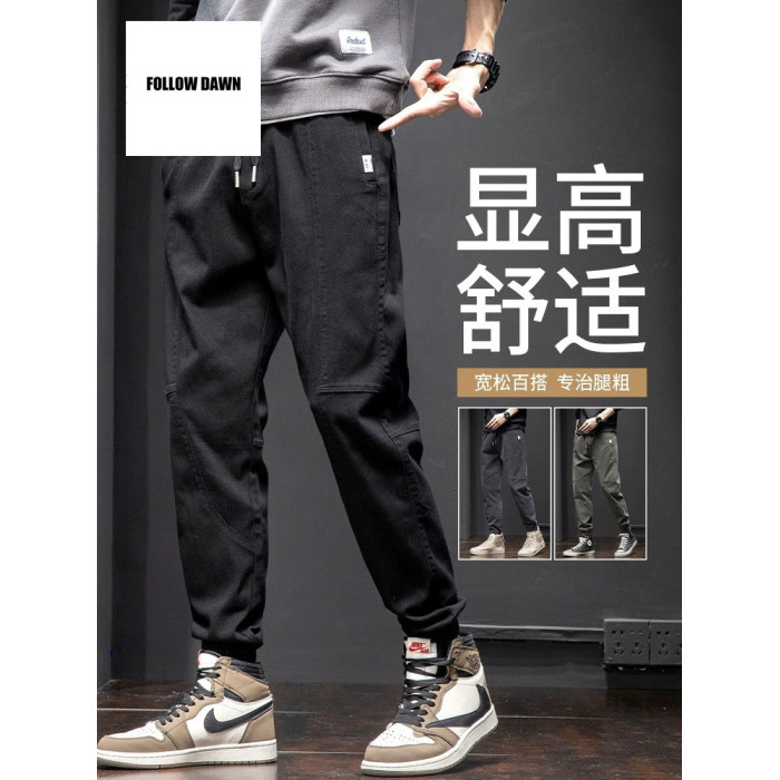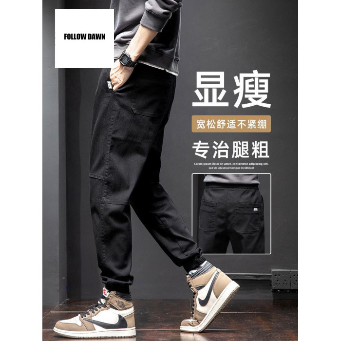 休閒褲男士寬松束腳2025新款春秋哈倫工裝褲運動彈力長褲
