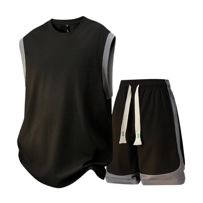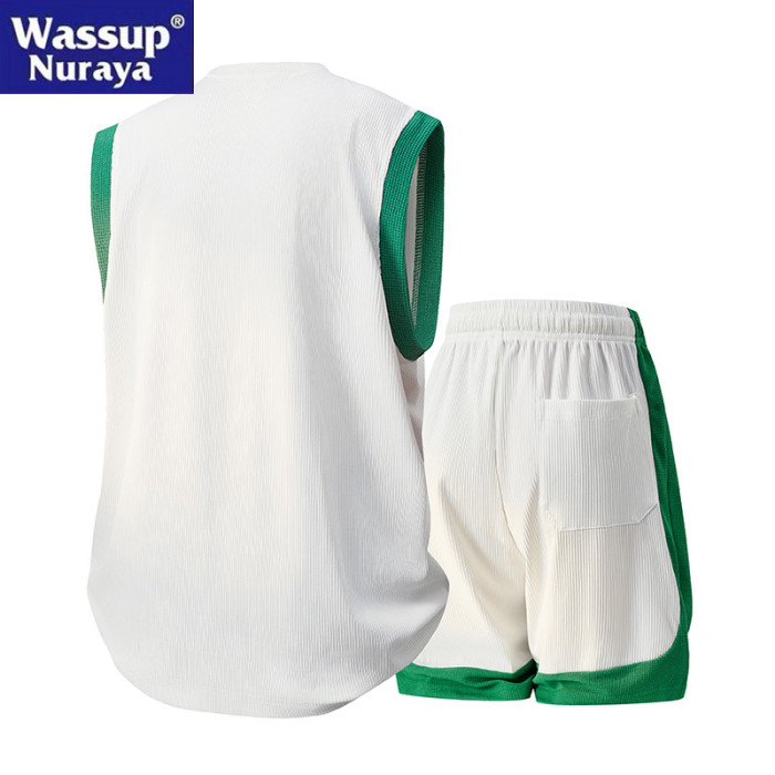 WASSUP Nuraya潮牌運動套裝男夏休閒冰絲無袖T恤短褲兩件套籃球服