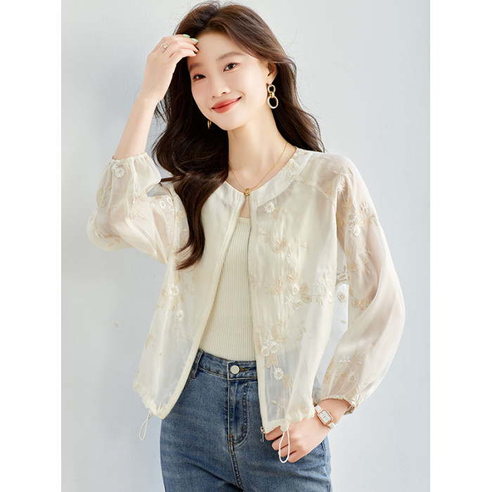 2025夏季新款防曬衣女款外套短款國風薄款防曬衫上衣洋氣刺綉冰絲