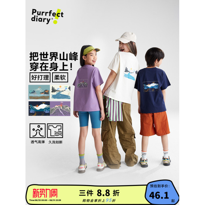 【世界山峰】咕嚕日記兒童印花T恤2025夏男女童圓領半袖親子上衣