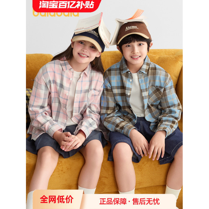 巴拉巴拉兒童襯衫長袖親子裝2025新款秋裝舒適超柔絨寬松柔軟親膚