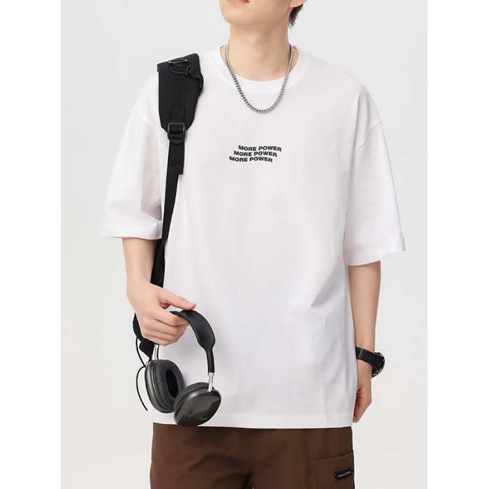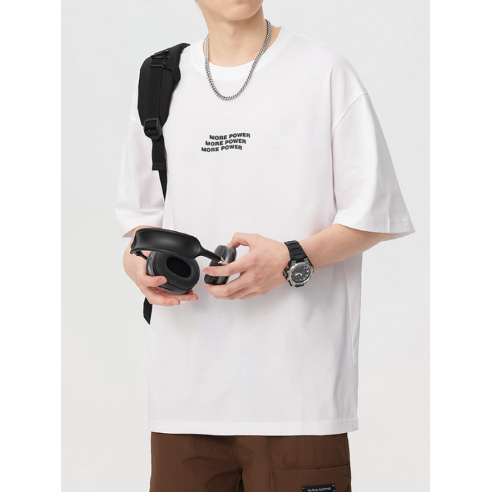 休閒重磅短袖T恤男款2025夏季潮牌印花寬松純棉圓領半袖體恤上衣