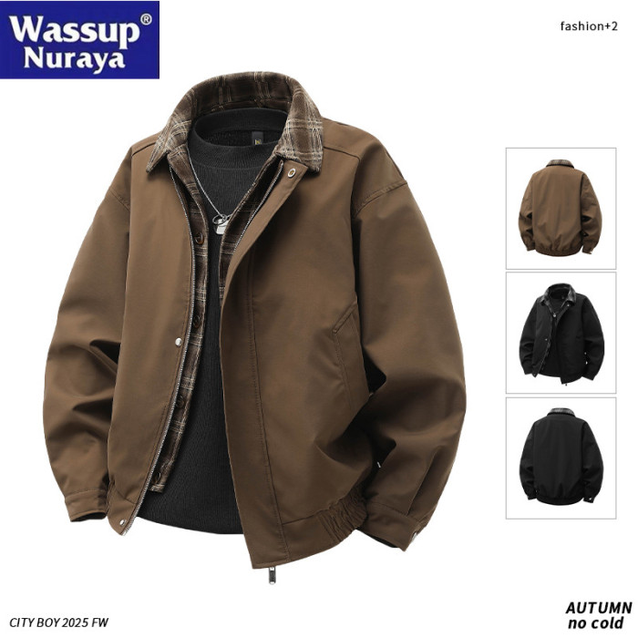WASSUP Nuraya潮牌假兩件外套男春秋青少年酷帥高級感襯衫領夾克