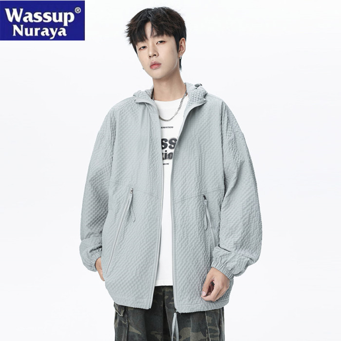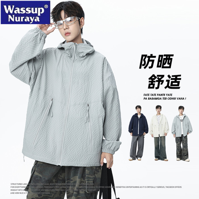WASSUP NURAYA美式連帽防曬衣男夏季防紫外線速乾泡泡紗皮膚衣女
