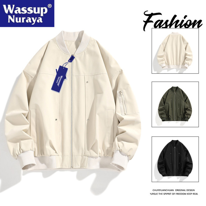 WASSUP Nuraya潮牌美式飛行夾克外套男春秋復古情侶高街棒球服男