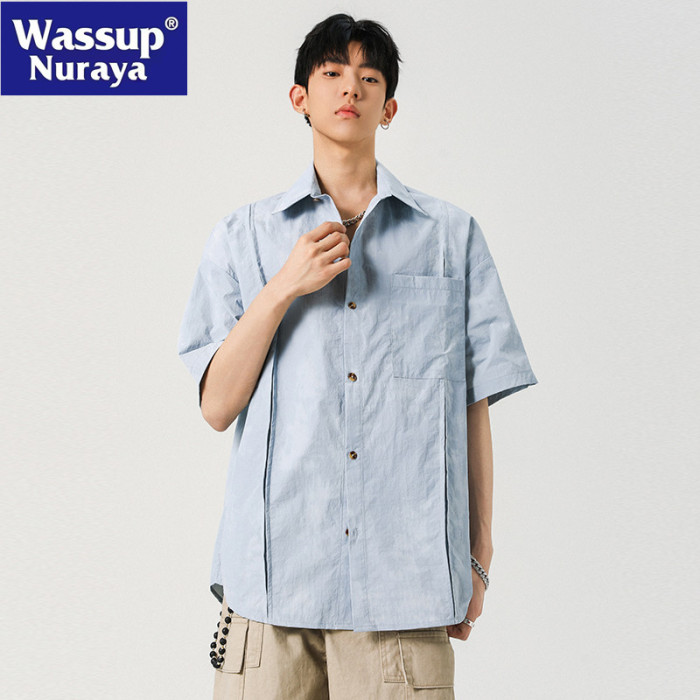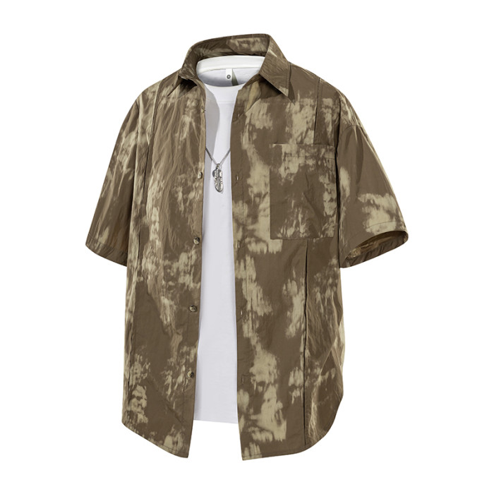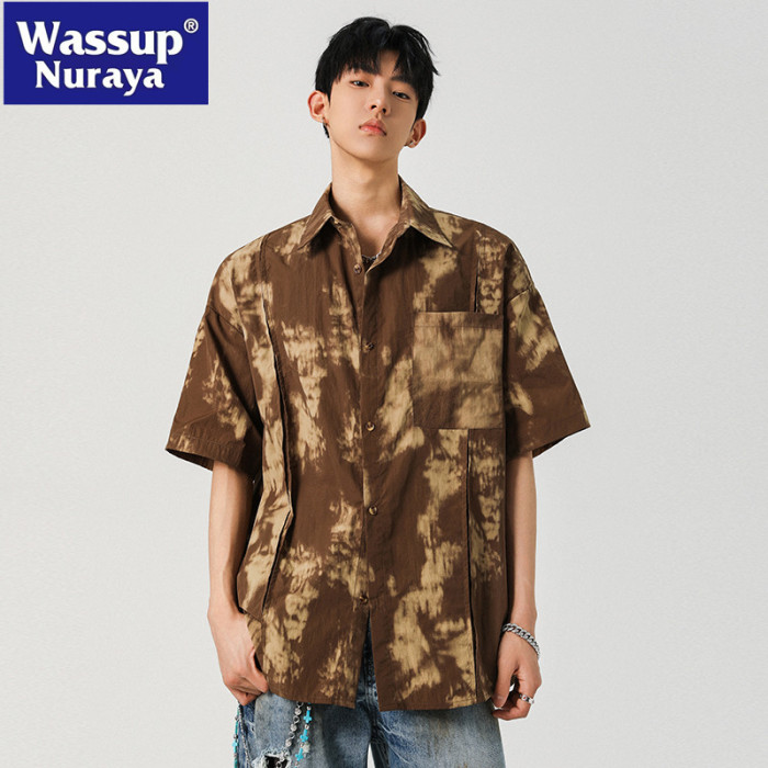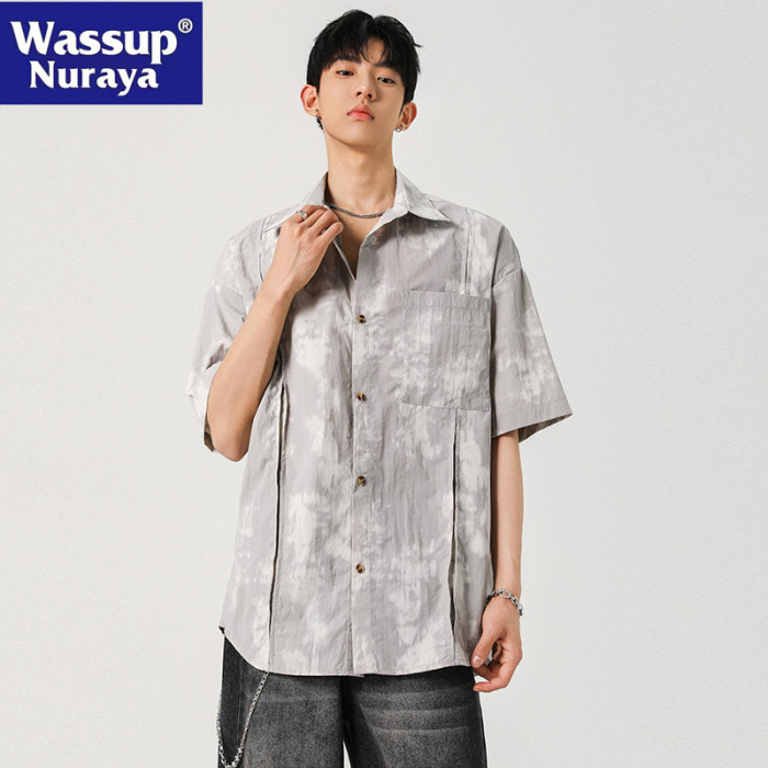 WASSUP NURAYA紥染漸變短袖襯衫男女寬松情侶款冰絲速乾休閒襯衣