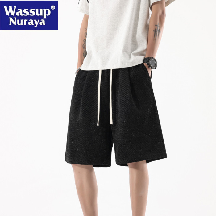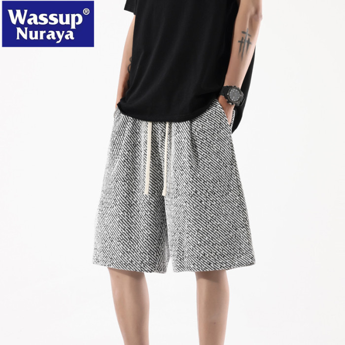WASSUP NURAYA星空紋休閒短褲男女夏季痞帥高街濶腿運動五分中褲